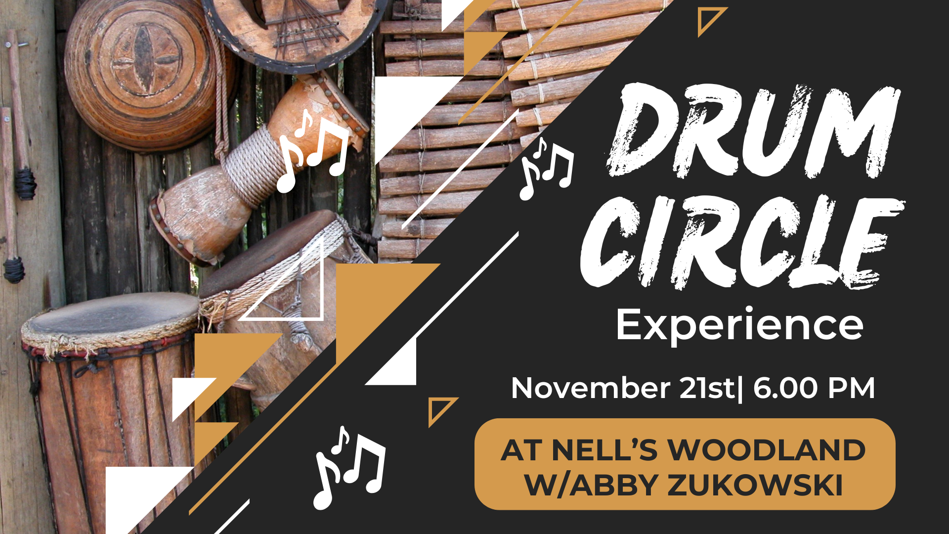 Percussion instruments will be available to borrow from the instructor for the session. If you have a percussion instrument that you would like to bring with you to the drum circle, please do!